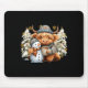Mousepad Cute Highland Cow With Snowman Hot Cocoa Christmas