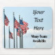 Foto de um grupo de bandeiras americanas voando na brisa contra um céu azul claro com nuvens. Projetado com espaço para você adicionar sua própria mensagem. Descontos para várias ordens. Por D. Bennett, da Balance America.