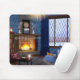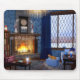 Um canto aconchegante num dia de inverno nevado, com um gato gengibre sentado olhando para o fogo brilhante. Ao redor da lareira estão cadeiras-de-braços suaves, com velas brilhantes e pilhas de livros e uma caneca a vapor para completar o conforto. Fora de um salgueiro coberto pela geada, a cobertura de faia é obscurecida pela queda da neve.