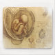 Estudo do esboço de Leonardo da Vinci de um embrião humano no ventre.