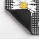 Padrão de gingham preto e branco com margarida branca. O nome é editável.