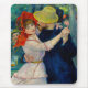 Mouse Pad com pintura a óleo de Pierre-Auguste Renoir Dança em Bougala (1883). Uma linda mulher de vestido rosa e chapéu vermelho dança com um homem bonito de terno azul. Um presente de excelente para os colecionadores de arte e impressionismo franceses.