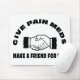 A frase, "dá a dor Meds - faça um amigo para a vida." A frase aparece acima & abaixo de um aperto de mão do estilo dos anos 60, o preto & o branco dos desenhos animados entre 2 homens.