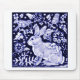O meu design original de coelho azul e branco foi originalmente apresentado num azulejo de cerâmica esmalte. Com pássaros, videiras e flores adaptadas de antigas matrizes orientais, essa design apelará a amantes de coelhos e coletores de cerâmica azul e branca.