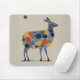 A blue-gray deer with multi-colored circles on the body creates a beautiful, modern design with an Asian influence on this mouse pad.
