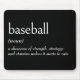 Uma definição de dicionário de BASEBALL está em texto branco em negrito sobre fundo preto. A cor de fundo pode ser alterada.