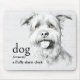 Uma definição de dicionário para DOG em texto preto sobre um fundo de madeira lavada em branco com um retrato de esboço aterrorizado e fofo