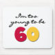 Eu sou demasiado novo ser 60! Se o 60th aniversário pareceu rastejar acima em você, se você recusa obter mais idoso, pelo menos no espírito, ou se você está procurando um grande presente para a pessoa que gira 60 anos velhos que pode ser usado o ano inteiro você amará este design de texto preto, vermelho, e amarelo.