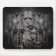Uma casa assombrada guardada por um demônio em um legal mouse pad para o Halloween ou qualquer hora.
