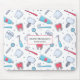 Mousepad com um padrão teórico dental. Apresentando ilustrações coloridas de dentes, escovas de dentes e várias ferramentas dentárias.