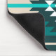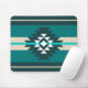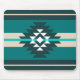 Padrão étnico boêmico asteca com formas geométricas em branco, bege e turquesa em fundo listrado