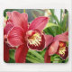 Mousepad com as orquídeas vermelhas e amarelas bonitas do cymbidium. Foto tomada nos jardins botânicos de Daniel Stowe em Belmont, NC. Grande presente para um amante da orquídea! Fotografia de Digitas por Sue Melvin