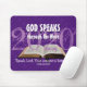 MOUSE PAD personalizável de Escritura na moda moderna, mostrando a imagem de Bíblia aberta com o ano 2020 em tipografia lilática mauve contra um fundo roxo e rico. As palavras DEUS FALA ATRAVÉS DE SUA PALAVRA aparecem em branco, com um verso e uma referência de Bíblia personalizáveis, que você pode personalizar com sua própria Escritura favorita ou adicionar seu nome. Ao fundo há um sutil padrão de PALAVRA INSPIRATIVA DE DEUS. Outros itens semelhantes estão disponíveis no DGOD HAS A ÚLTIMA coleção SAY por Designs Bereanos.
