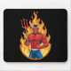 Devil with trident in the fire, Evil laughing devil, Angry red demon illustration, muscular demon with glowing eyes, strong sports cartoon character,