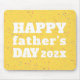 Feliz Dia de os pais e o ano está escrito em negrito texto branco. Ele realmente pop contra um padrão de pintura em amarelo mostarda.