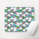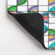 Este mouse pad tem um design de boho de ovais dentro de flores que foram divididos em quartos e colocados em uma grade.