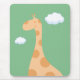 Mousepad customizável com ilustração do girafa bonito do bebê com a cabeça nas nuvens. A cor do fundo pode ser mudada.