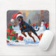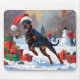 Mousepad Doberman Correndo na Neve com Chapéu de Natal