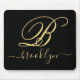 Mousepad Dourado Elegante moderno, preto, monograma manuscr