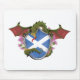 Um dragão escocês envolto em um escudo de bandeira escocês.
