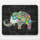 Flores coloridas arranjadas em forma de elefante com pernos de diamante nos olhos e em poucos outros lugares. Não diamantes de verdade apenas uma imagem. Padrão negro dos damascos florais