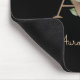 O mouse preto elegante apresenta um monograma botânico dourado no centro.