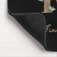 O mouse preto elegante apresenta um monograma botânico dourado no centro.