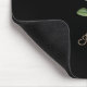 O mouse preto elegante apresenta um monograma botânico dourado no centro.