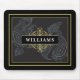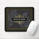 Adicione algum estilo ao seu escritório corporativo ou residencial com este elegante mousepad apresentando um padrão clássico de paisley cinza e preto, um emblema dourado e nome personalizável. Este design é elegante e masculino, e fará um ótimo presente para você, familiares, amigos ou colegas de trabalho. Modifique o nome para atender às suas necessidades.
