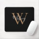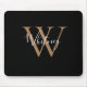 Tapete de rato com nome em letra de forma preta e dourada elegante. Pode personalizar o nome, a inicial do monograma e personalizar a letra e as cores para criar o seu próprio desenho único. Concebido por Thisisnotme©