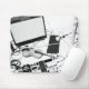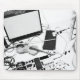 Este mouse pad apresenta um violino acoplado a um amp e alguns efeitos pedais.