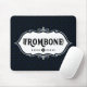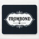 Trombone em texto decorativo contra um emblema branco é um design de presente único para músicos de baixo nível, professores de música e estudantes em concertos e bandas marchantes.