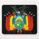 A brasão de Bolívia tem um cartouche central cercado por bandeiras bolivianas, mosquetes, o louro ramifica, e tem um condor andino na parte superior.