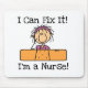 A figura t-shirt, canecas, cartões, etiquetas, sacolas, ímãs, botões, e mais da vara da enfermeira com uma figura adorável enfermeira e um gigante da vara fez sob medida a atadura e o texto que me lê "pode fixá-lo que eu sou uma enfermeira".