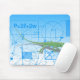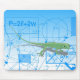 Um mouse pad que tem uma ilustração de um lagarto verde parado em um papel cheio de equações matemáticas e designs geométricos.