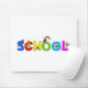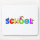 Ilustração bonito dos desenhos animados dos rapazes pequenos e das meninas que escalam sobre as letras gigantes do alfabeto que soletram para fora a palavra ESCOLA. Imagem disponível em vários presentes e produtos. Mousemats. Mousepads.