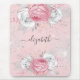 Um fundo cor-de-rosa pincelado com florais cor-de-rosa, folhagem prateada. Personalize e adicione seu nome. O nome é escrito com um moderno estilo escrito à mão com traços. Para manter as hastes, exclua apenas o nome da amostra, deixe os espaços ou emoji na frente e depois do nome.