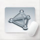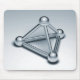 Um bocal com uma CGI 3d rendeu imagens de uma estrutura piramidal metálica reflexiva de três lados feita de esferas conectadas por tubos.