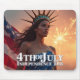 Celebre o Dia da Independência Americana ao estilo! Esta impressionante design apresenta uma interpretação moderna da Estátua da Liberdade com uma aparência majestosa, um vestido nas cores da bandeira dos EUA e um cheio de fundo de fogos de artifício e orgulho. Perfeito para o dia 4 de julho, acontecimentos patrióticos ou simplesmente como uma declaração de liberdade e independência.