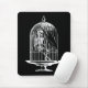 Uma colagem de imagens de vintage forma uma vinheta gótica de fantasia de um pequeno esqueleto com asas e uma coroa princesa sentada a dentro a pássaro cortado.