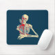 Feliz esqueleto sorridente com sua mão bonitinha descansando em seu queixo, feito em cores retrógradas.