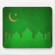 Elegante ilustração islâmica: silhueta da mesquita ouro com lua e uma estrela sobre fundo verde-doce.