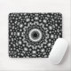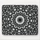 um design caleidoscópico preto e branco baseado em formas de asterisco organizadas aleatoriamente.