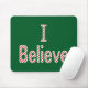 Eu acredito em uma pia batismal vermelha e branca do bastão de doces do peppermint no evergreen para um mousepad festivo do Feliz Natal porque eu acredito no papai noel