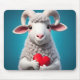 Engraçado, segurando um coração vermelho, poderia ser usado como saco para tricotar lã, agulhas etc.
