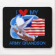 Eu amo meus t-shirt do neto do exército, canecas, cartões, etiquetas, hoodies, mousepads, botões, porte postal, e outros artigos, perfeitos para as avós que têm um serviço do neto com o exército dos EUA! Caracteriza um design branco patriótico da pomba dos EUA e da bandeira dos E.U.
