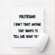 Eu não confio em um tapete de mouse que você pode contar ao mundo sobre quem você não confia. Políticos, amigos, funcionários ou quem quer que seja. Claro que você não precisa necessariamente dizer isso, mas talvez, apenas talvez você queira. Quem saberá? Apenas você:0)