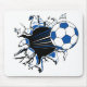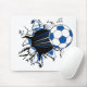 Um design astucioso do futebol com um soccerball que estoura certo através de seu t-shirt! (Ou crachá ou ímã…)