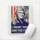 Reminiscente do tio Sam famoso "eu quero-o" imagem, Thomas Jefferson - um grande inimigo de esquemas centrais da operação bancária - pontos ao visor que exclama que "eu o quero terminar o Fed."