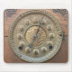 Fotografia da face de um relógio de manta antigo de ornamentado.